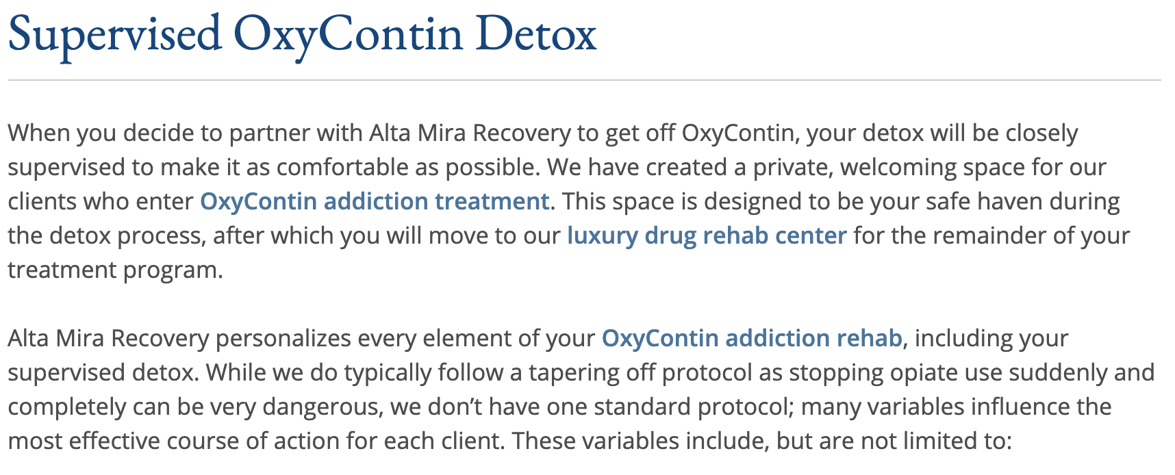 Their blogging strategy doesn’t involve teaching the reader how to detox from a substance, which is what most people doing online research in this topic are looking for.