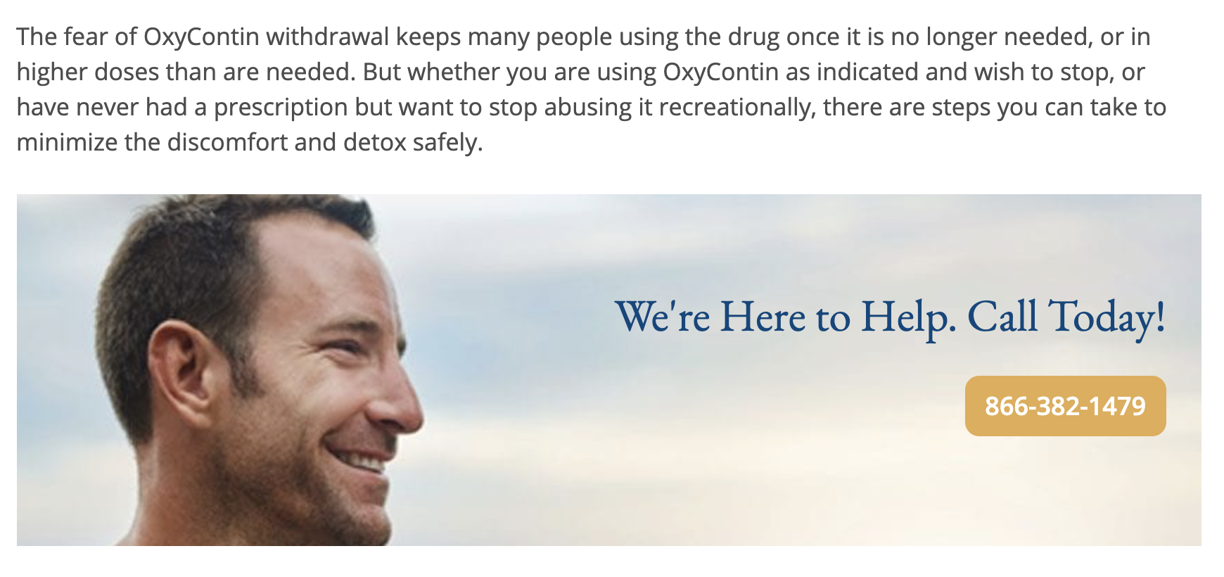 - At the top of the organic search results is an article titled “How To Detox from OxyContin” and they click on it