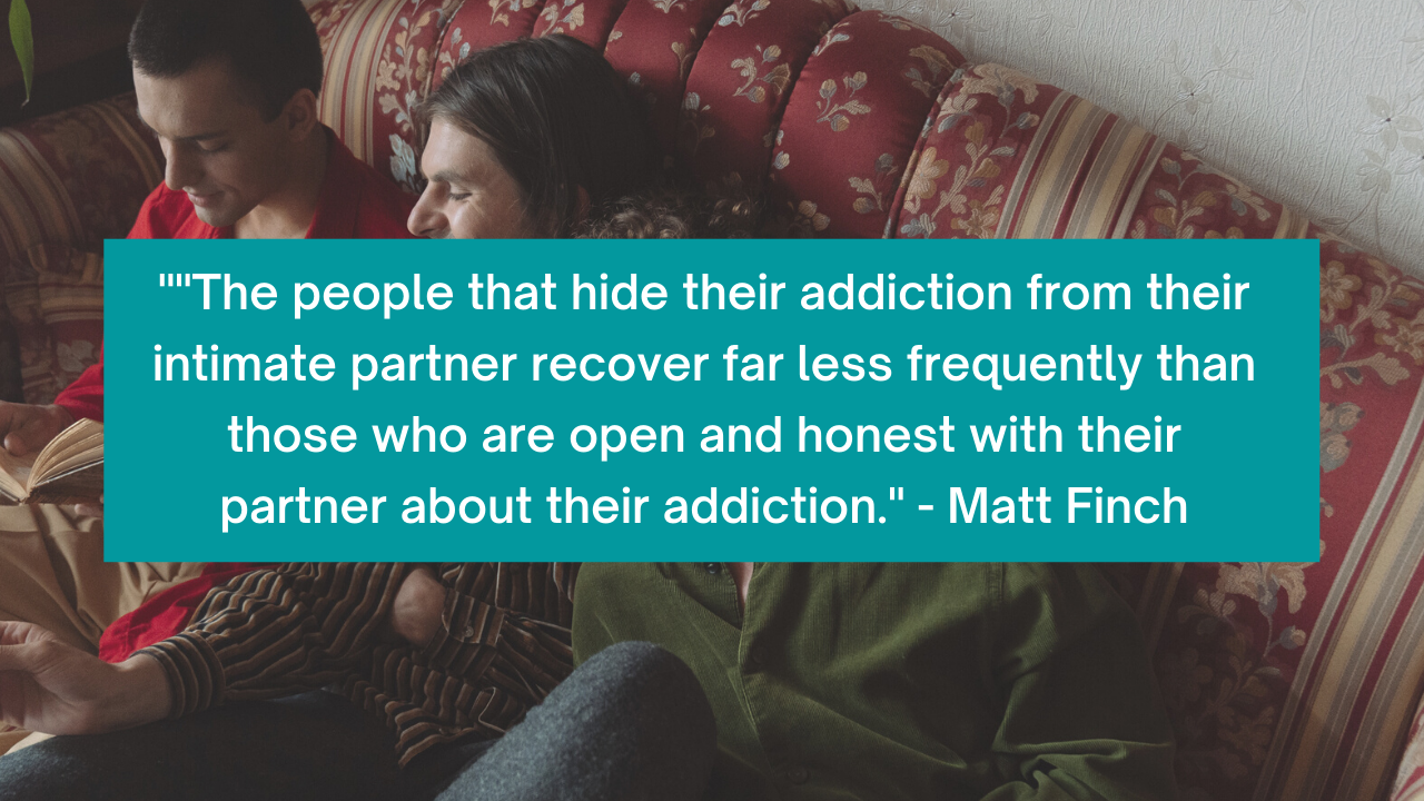 "The people that hide their addiction from their intimate partner recover far less frequently than those who are open and honest with their partner about their addiction." - Matt Finch